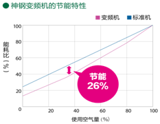 采用高效率IPM電機、充分考慮部分負載的本體設(shè)計,更進一步提高變頻機的節(jié)能效果。 根據(jù)使用空氣量進行轉(zhuǎn)數(shù)控制,用更為合適的動力得到必需的空氣量。 | ![]() | ||