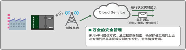 | ●隨時隨地檢查運行狀況 通過網(wǎng)絡(luò)實時顯示運行狀況。 發(fā)生異常、警報、維修警報時將自動發(fā)送郵件通知,通過PC可以隨時確認空壓機的運行狀況。 |