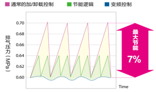 變頻機的恒定壓力控制可以抑制由于無謂的升壓造成的能耗,壓力調(diào)整幅度控制在±0.01MPa以下。 | ![]() | ||