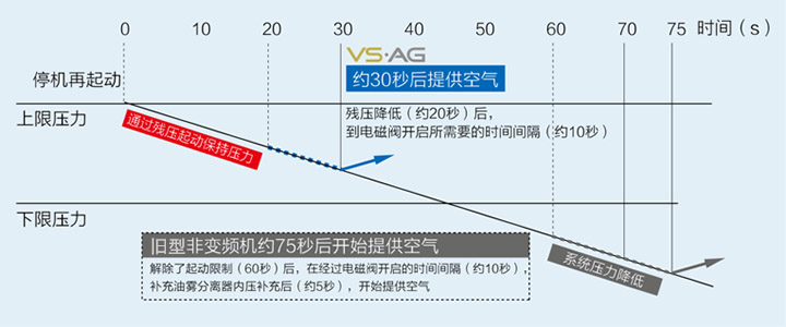 | 標(biāo)準(zhǔn)配置了當(dāng)加載運(yùn)行超過(guò)容量調(diào)整周期(30S)時(shí)可以進(jìn)行強(qiáng)制卸載的節(jié)能邏輯功能。在壓力調(diào)整幅度減少的基礎(chǔ)上,利用較小的壓力切換至卸載運(yùn)行,抑制由于無(wú)謂的升壓造成的能耗。 |