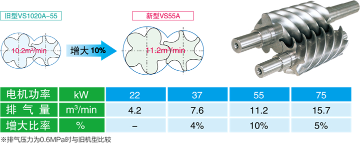| 重新設(shè)計(jì)壓縮機(jī)的心臟—壓縮機(jī)主機(jī),通過(guò)加大轉(zhuǎn)子尺寸,優(yōu)化轉(zhuǎn)子內(nèi)部結(jié)構(gòu),提供高水平的排氣量。 |
