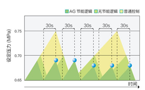 | 標(biāo)準(zhǔn)配置了當(dāng)加載運(yùn)行超過容量調(diào)整周期(30S)時(shí)可以進(jìn)行強(qiáng)制卸載的節(jié)能邏輯功能。在壓力調(diào)整幅度減少的基礎(chǔ)上,利用較小的壓力切換至卸載運(yùn)行,抑制由于無(wú)謂的升壓造成的能耗。 | ![]() |