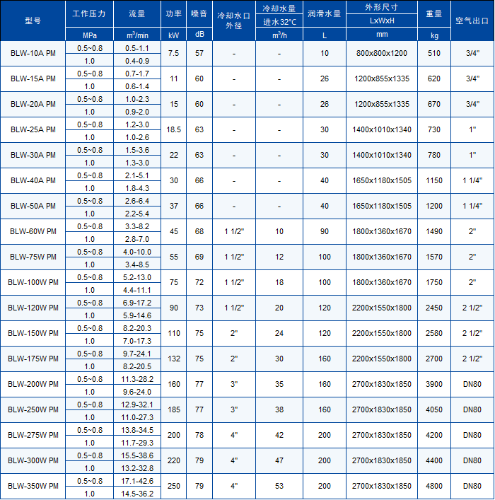 博萊特?zé)o油空氣壓縮機(jī)技術(shù)參數(shù)表: