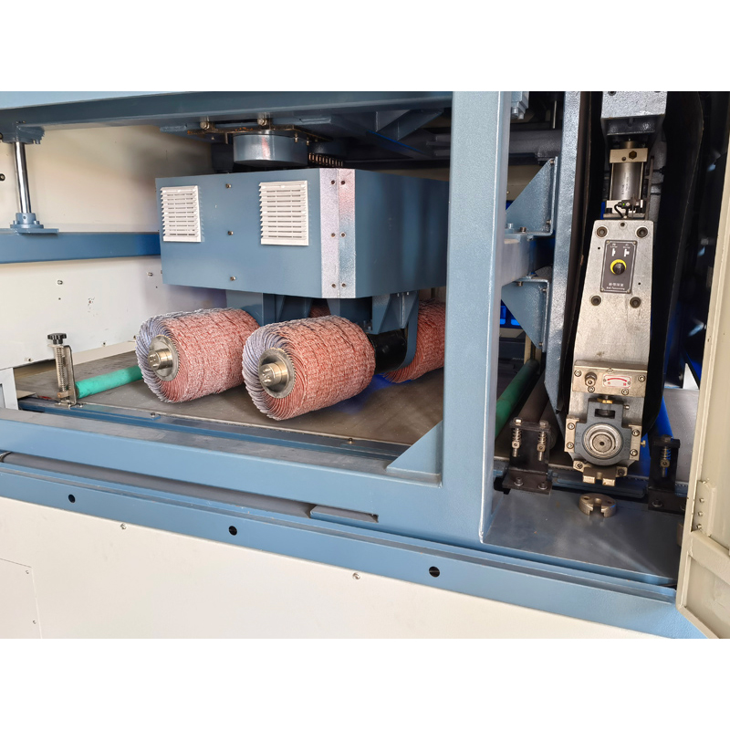 DRR-WX系列干式砂帶+滾刷+研磨機適用于各類平面板類零件表面拉絲、拋光、去劃傷、去除縱向毛刺、倒角、去氧化皮、拉毛、定厚等加工等。