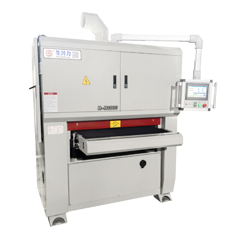 The exterior treatment unit itself is equipped with a fine sand belt, an abrasive flannelette or a rotating brush. Sand belt or abrasive flannelette will generally be mounted on two rollers, specifically to deal with the appearance of sheet metal. This allows the user to obtain a uniform and beautiful workpiece. The rotating brush is used to achieve directional surface finishing for the user. It moves around the circle and grinds repeatedly on the workpiece from different directions to create a clean and bright appearance.